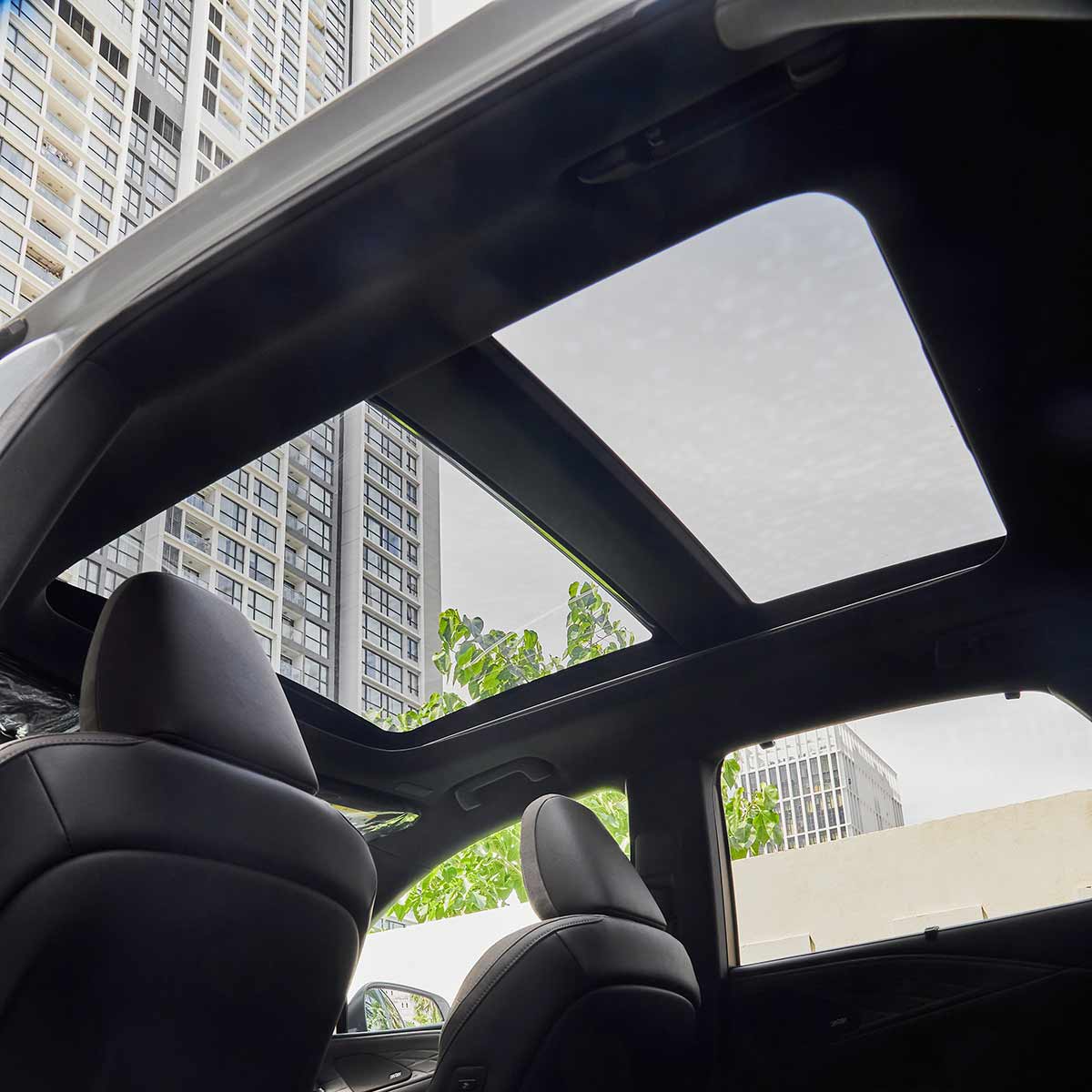 Phần kính phía trước 3 lớp cách âm, phần kính ở hàng ghế sau được trang bị kính tối màu riêng tư, có rèm riêng tư.